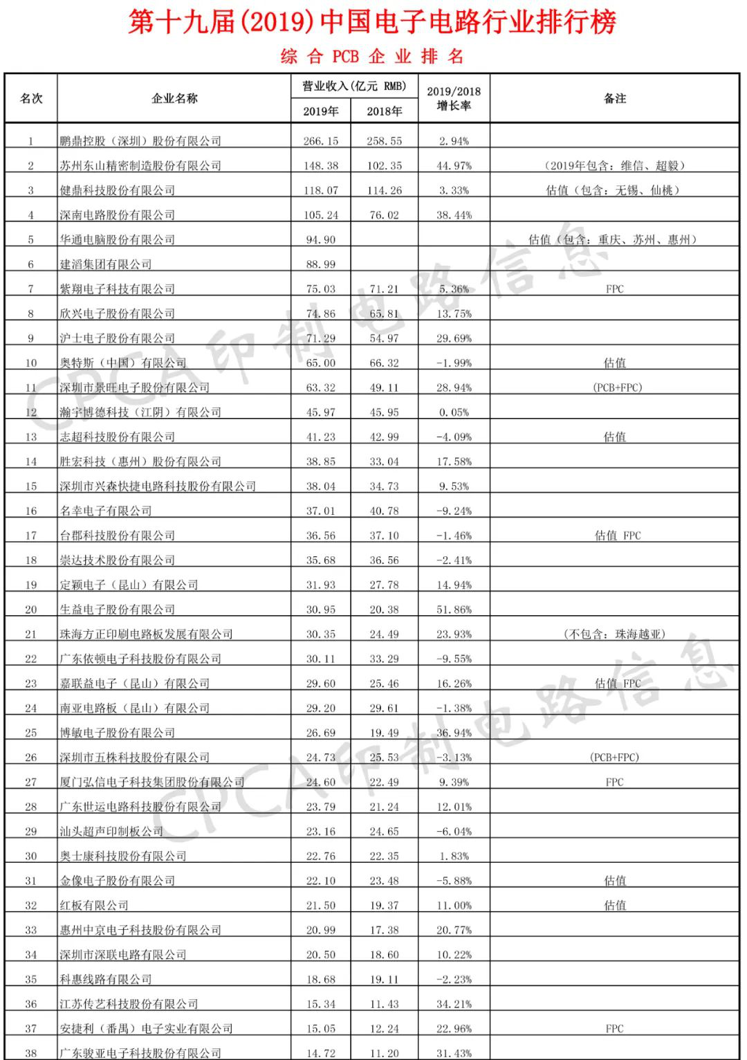 1. 2019年入榜綜(zong)合100家PCB企業合計營(ying)業收入2373.97億元人民(mín)币(2018年🐪爲2098.72億元人民(min)币),綜合排行榜100家(jiā)PCB企業同比增加275.25億(yi)元人民币,綜合排(pái)行榜👅100家PCB企業同比(bi)增長13.12%。前三位仍然(rán)是:鵬鼎控股、東🈲山(shān)精密、健鼎科技,東(dong)山精密由排名第(dì)三位上升到第二(er)位。