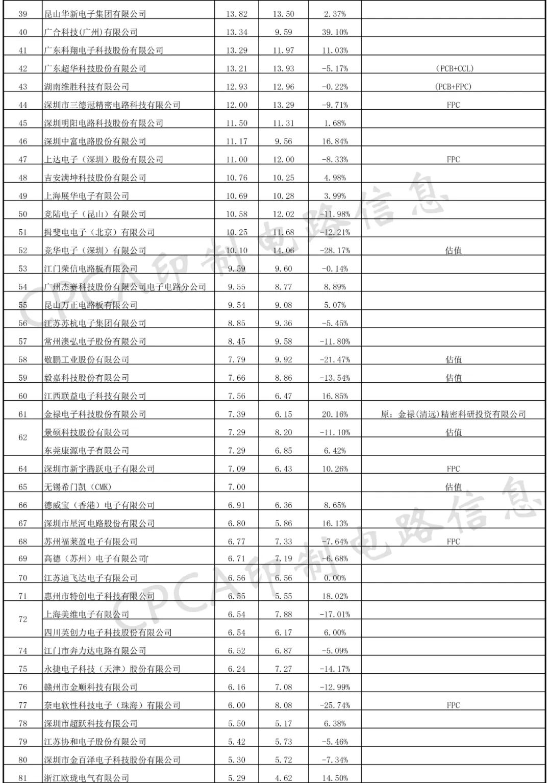 4. 綜合與内(nei)資141家PCB企業2019/2018同比情(qíng)況: