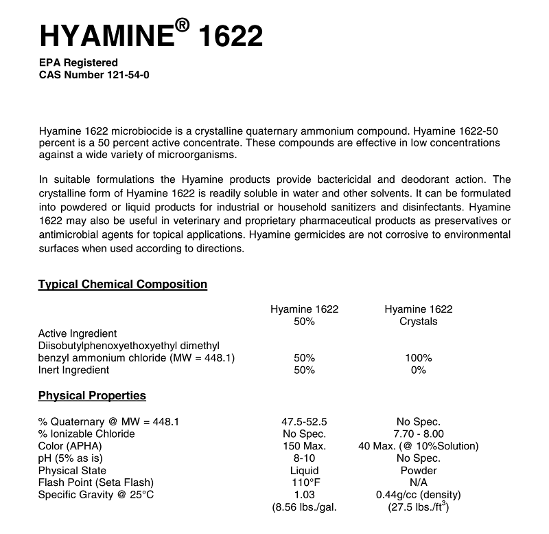 特(te)征:HYAMINE 1622 CRYSTAL的化(huà)學成分(fèn)是二異(yi)丁基苯(ben)氧基乙(yi)氧乙基(ji)二甲基(jī)卞基🌂單(dan)水氯化(huà)铵,爲季(ji)铵鹽結(jié)晶狀化(hua)合物,是(shi)符合🌈FDA非(fei)直接食(shi)品接💯觸(chù)添加劑(ji)要求的(de)安全殺(shā)菌劑👣産(chan)品,在藥(yào)水中表(biao)現爲❄️電(diàn)化學惰(duò)性。
